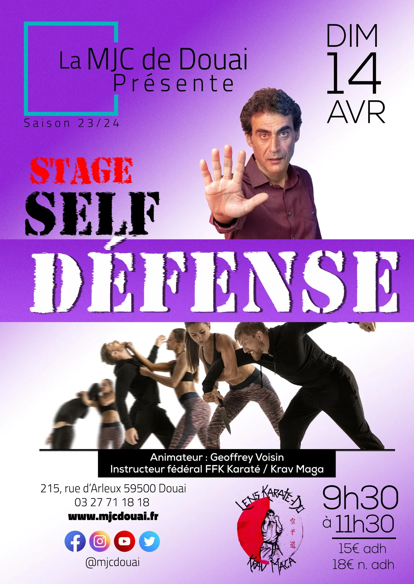 <p>Vous cherchez à renforcer votre confiance en vous, à apprendre des techniques efficaces d'autodéfense et à améliorer votre sécurité personnelle ? Ne cherchez plus ! Notre stage de self défense est là pour vous.<BR />Ce stage est aussi destiné aux débutants.</p><p>Tarifs : 15€ Adhérents, 18€ sinon</p>