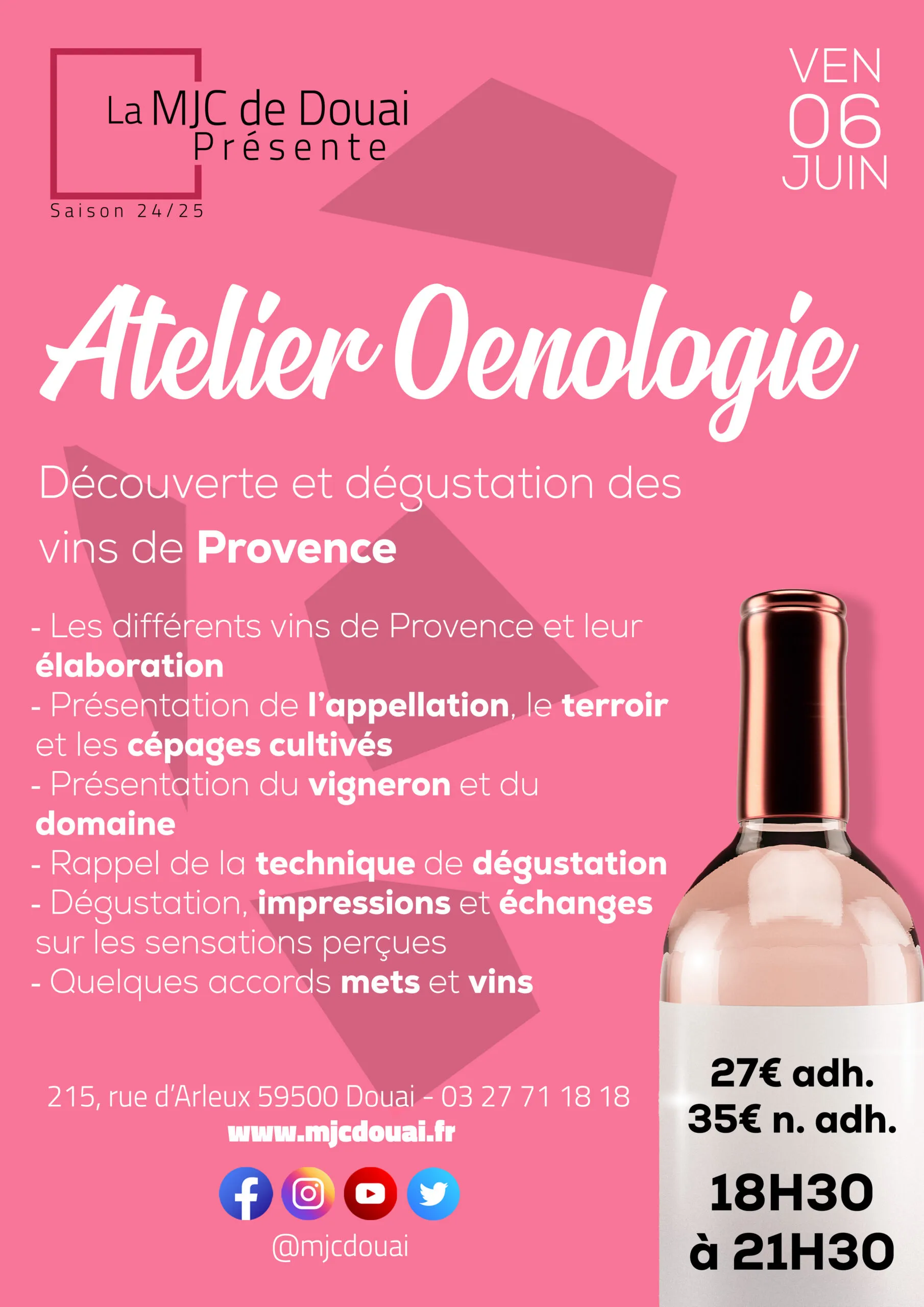 Embarquez pour un voyage sensoriel au cœur de la Provence ! Rejoignez La MJC de Douai pour un atelier d’œnologie captivant, axé sur la diversité et les saveurs exquises des vins de cette région française renommée.