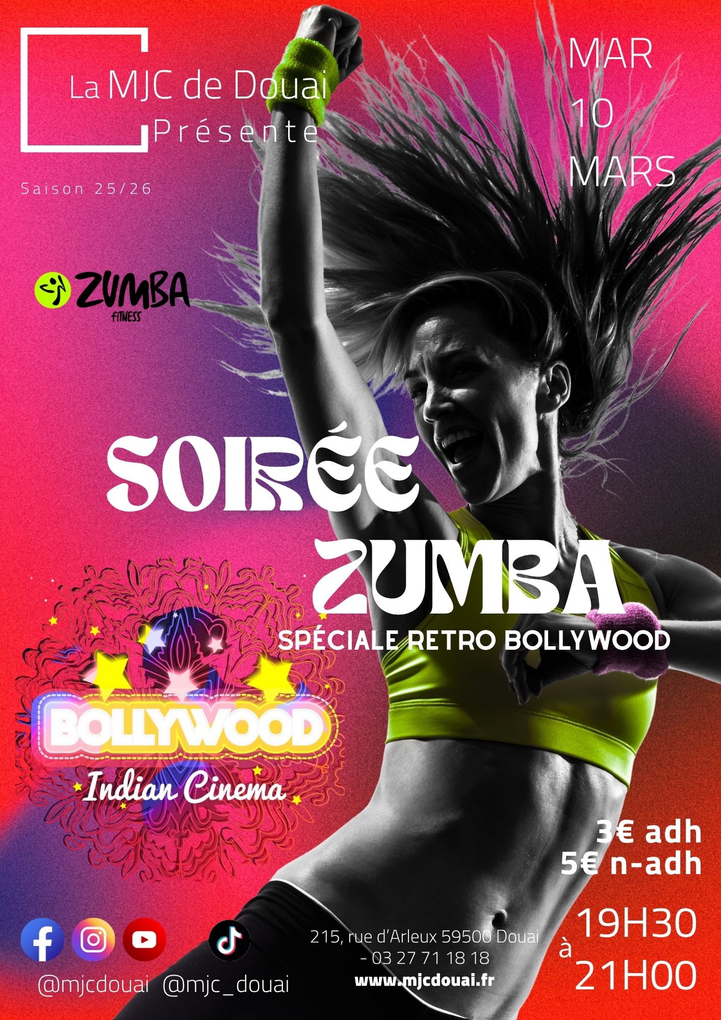 Cette soirée zumba aura pour theme « retro bollywood », aura lieu le Mardi 10 Mars de 19h30 à 21h.